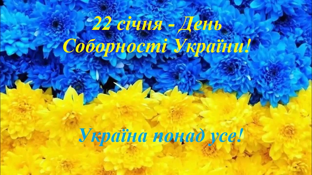 22 січня український народ святкує День Соборності України. 1919 року у цей день був проголошений Акт воз'єднання Української Народної Республіки та Західноукраїнської Народної Республіки.